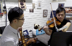 One-armed violinist prepares to take a bow