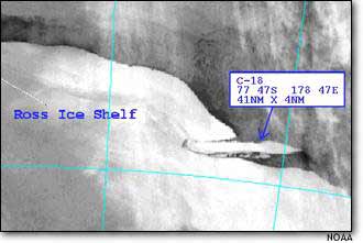 The news follows the March collapse of the so-called Larsen B ice shelf in Antarctica in the Weddell Sea near Chile -- which was the size of a small European country. The collapse on the Ross ice shelf -- in the Ross Sea -- is about 41 nautical miles long and 4 nautical miles wide. It was spotted by the National Ice Center in Suitland, Maryland, which analyzed infrared photos taken on May 5 by a military satellite. The collapse likely occurred over the last two weeks, a spokesman for the center said. The Ice Center gathers data for the U.S. Department of Defense, National Oceanic and Atmospheric Administration and U.S. Coast Guard. The collapse is a result of so-called calving, as constant motion by polar ice caps fractures the ice into sometimes-large fragments that float loose into the sea. Green groups pointed to the ice shelf collapses as evidence that emissions of greenhouse gases are causing global temperatures to rise and the polar ice caps to melt. For meteorological reasons, glaciers are one of the first indicators of rising planetary temperatures, said Kalee Kreider, a global warming expert at the National Environmental Trust. "They're a canary in the coal mine for the global warming trend," Kreider said. Carbon emissions from power plants and factories have been linked to global warming, which scientists warn could lead to massive flooding and rising ocean levels. The United States is the world's largest emitter of so-called greenhouse gases